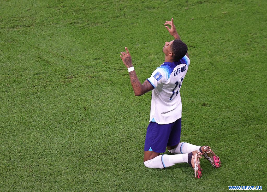 AL RAYYAN, 29 noviembre, 2022 (Xinhua) -- Marcus Rashford, de Inglaterra, festeja su gol durante el partido correspondiente al Grupo B entre Gales e Inglaterra en la Copa Mundial de la FIFA 2022, en el Estadio Ahmad Bin Ali, en Al Rayyan, Qatar, el 29 de noviembre de 2022. (Xinhua/Wang Dongzhen)
