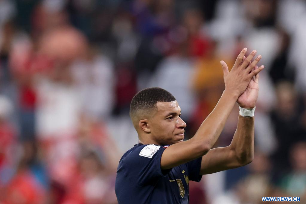 AL RAYYAN, 30 noviembre, 2022 (Xinhua) -- Kylian Mbappe, de Francia, saluda a los espectadores al término del partido correspondiente al Grupo D entre Túnez y Francia en la Copa Mundial de la FIFA 2022, en el Estadio Ciudad de la Educación, en Al Rayyan, Qatar, el 30 de noviembre de 2022. (Xinhua/Han Yan)