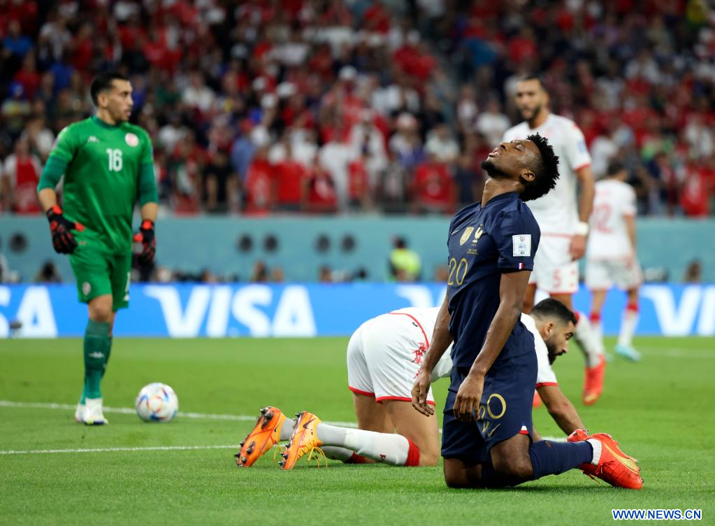 AL RAYYAN, 30 noviembre, 2022 (Xinhua) -- Youssouf Fofana (c), de Francia, dispara durante el partido correspondiente al Grupo D entre Túnez y Francia en la Copa Mundial de la FIFA 2022, en el Estadio Ciudad de la Educación, en Al Rayyan, Qatar, el 30 de noviembre de 2022. (Xinhua/Chen Cheng)