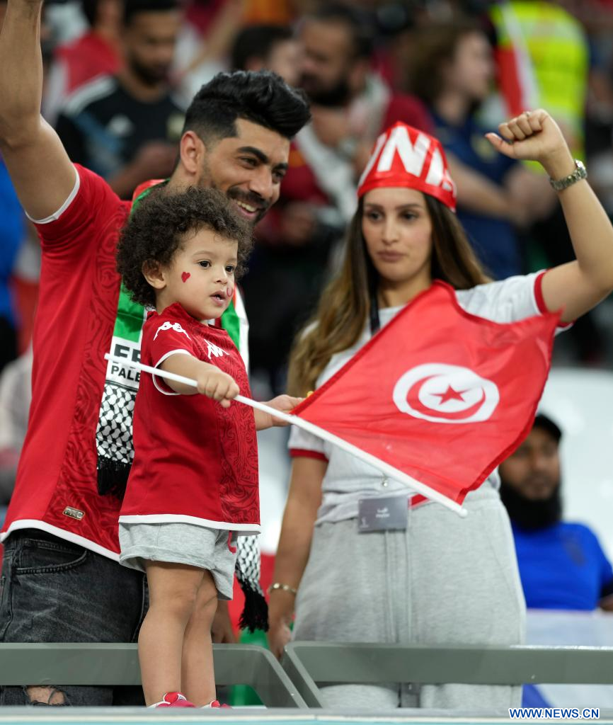 AL RAYYAN, 30 noviembre, 2022 (Xinhua) -- Aficionados de Túnez esperan el inicio del partido correspondiente al Grupo D entre Túnez y Francia en la Copa Mundial de la FIFA 2022, en el Estadio Ciudad de la Educación, en Al Rayyan, Qatar, el 30 de noviembre de 2022. (Xinhua/Li Ming)