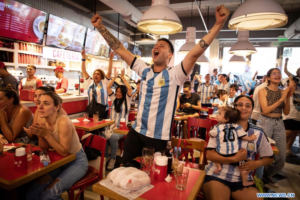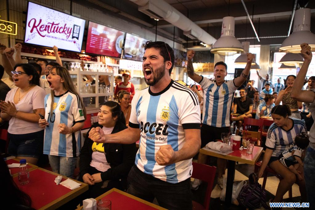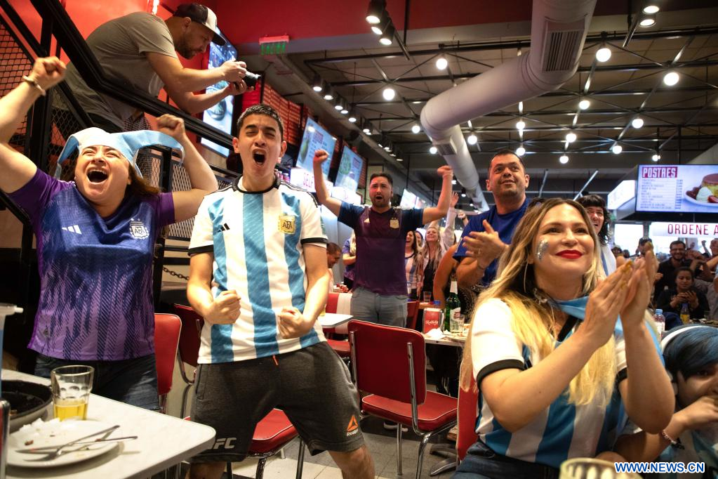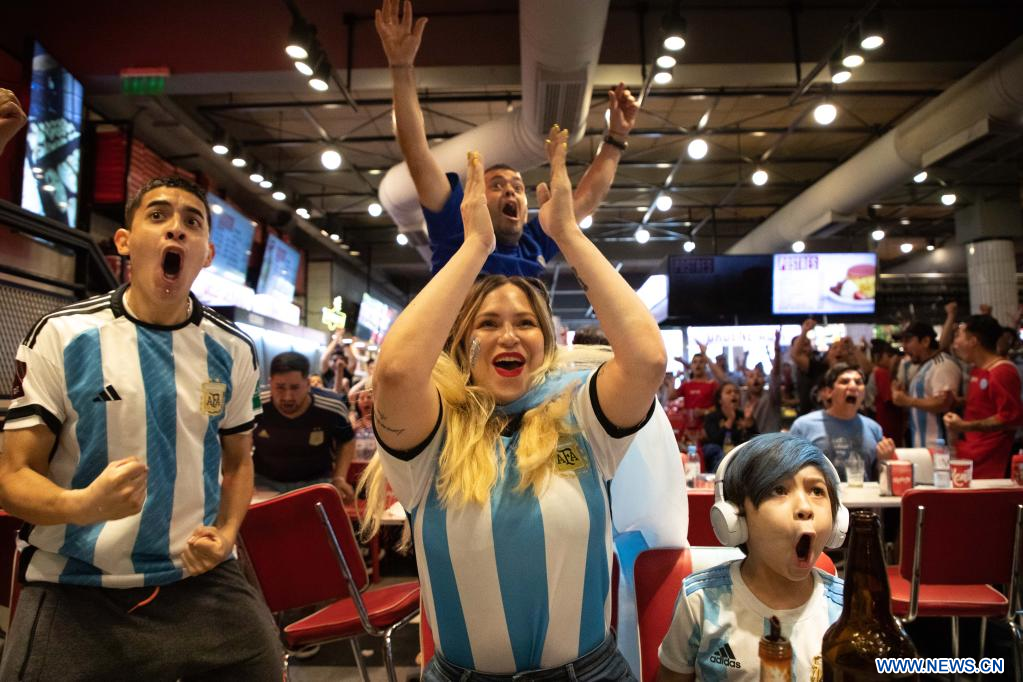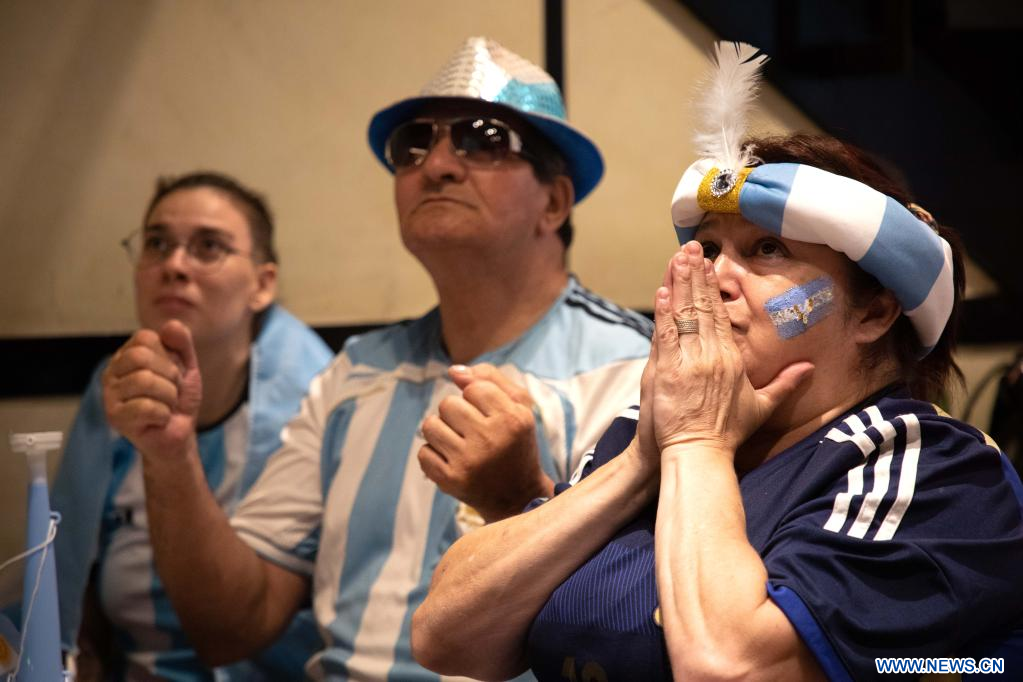 BUENOS AIRES, 30 noviembre, 2022 (Xinhua) -- Aficionados de Argentina observan una transmisión en vivo del partido correspondiente al Grupo C entre Argentina y Polonia en la Copa Mundial de la FIFA 2022, en la ciudad de Buenos Aires, Argentina, el 30 de noviembre de 2022. (Xinhua/Martín Zabala)