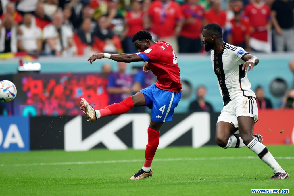 AL KHOR, 1 diciembre, 2022 (Xinhua) -- Keysher Fuller (i), de Costa Rica, dispara durante el partido correspondiente al Grupo E entre Costa Rica y Alemania en la Copa Mundial de la FIFA 2022, en el Estadio Al Bayt, en Al Khor, Qatar, el 1 de diciembre de 2022. (Xinhua/Li Ming)