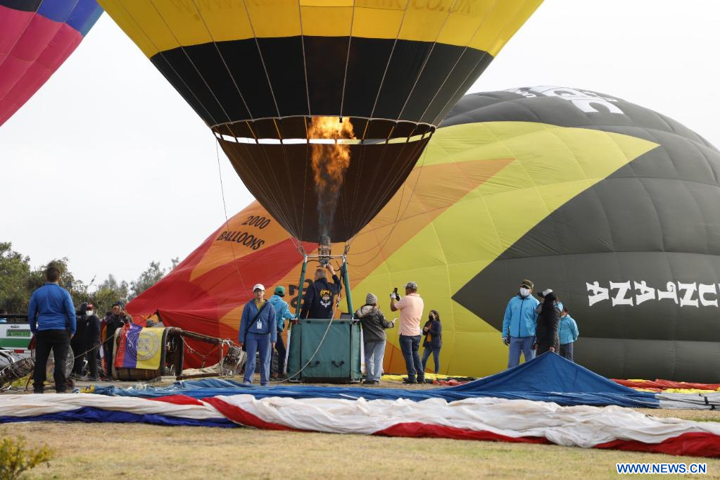 QUITO, 10 dic (Xinhua) -- El cielo de la ciudad ecuatoriana de Quito se llenó hoy sábado de color y encanto con más de 20 globos aerostáticos multicolor que tomaron el vuelo durante el "Primer Festival Internacional del Globo Mitad del Mundo 2022", que concluirá mañana domingo.