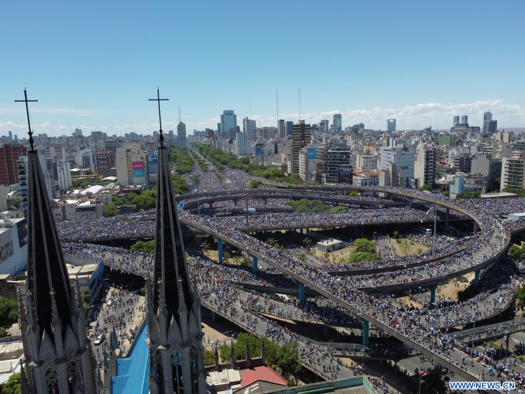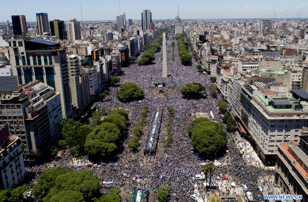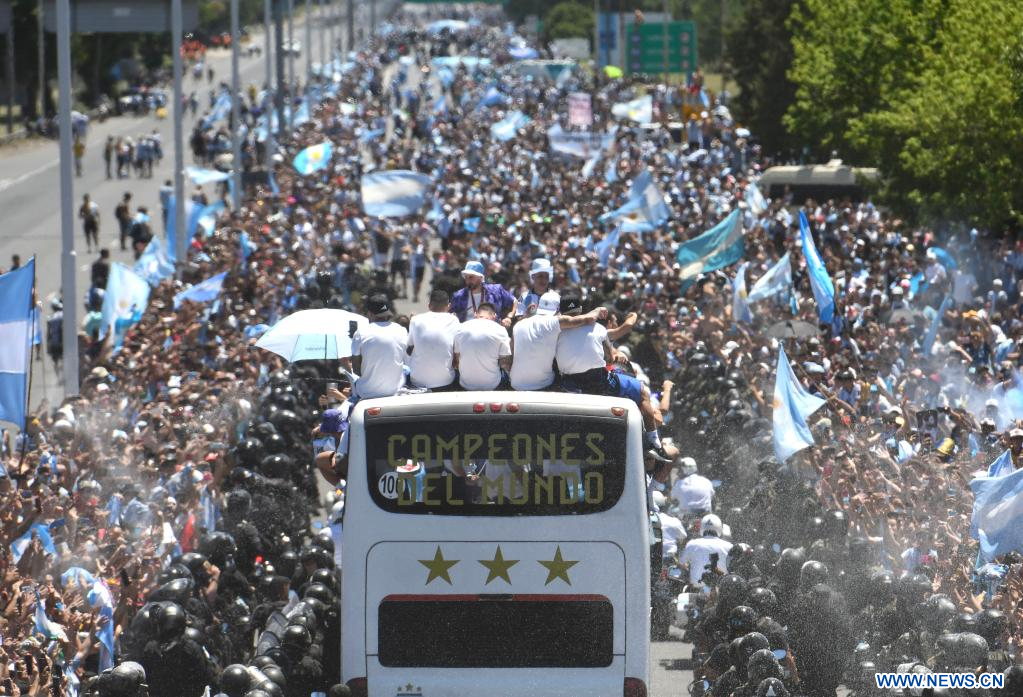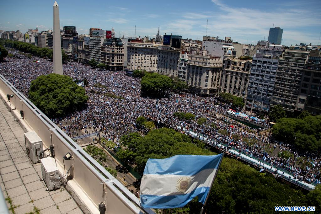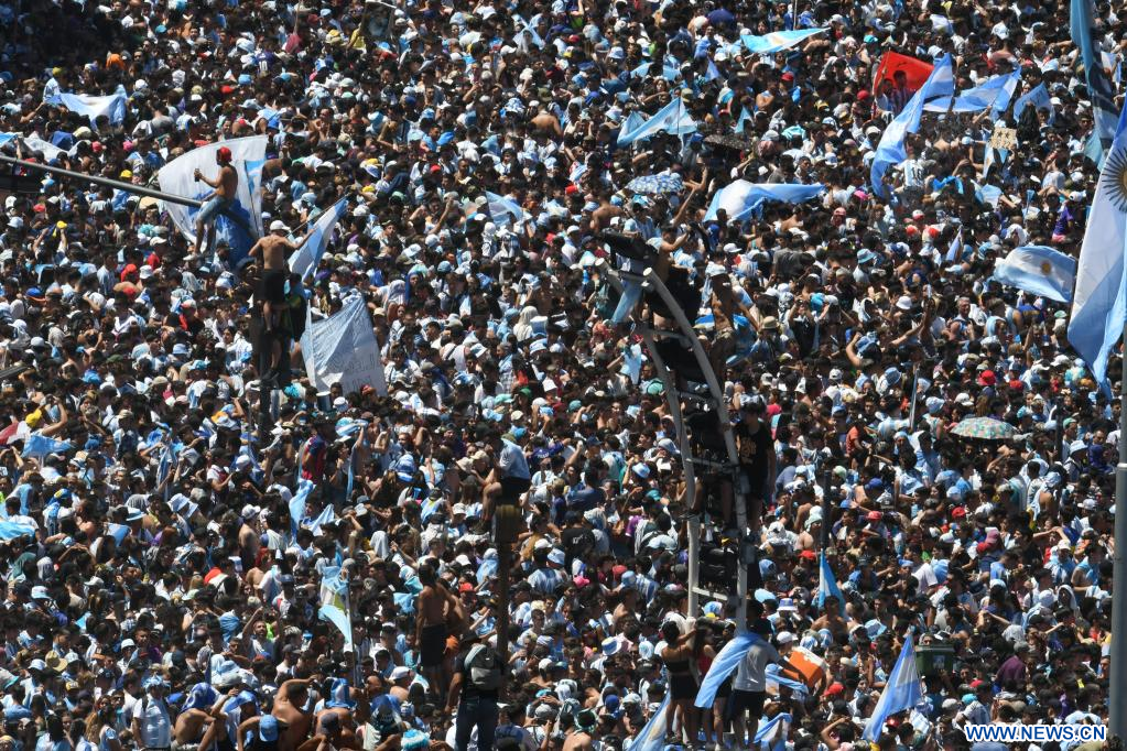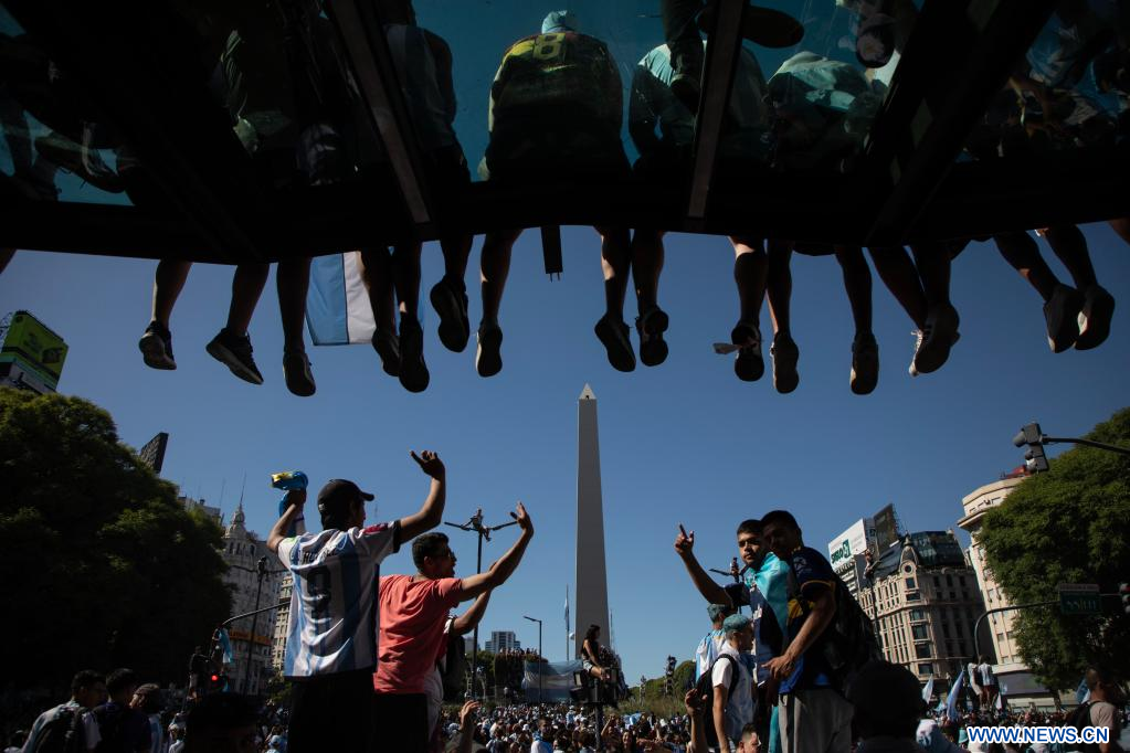 BUENOS AIRES, 20 dic (Xinhua) -- Una multitud se lanzó hoy martes a las calles de la ciudad argentina de Buenos Aires y sus adyacencias para recibir al seleccionado argentino de fútbol, flamante campeón del Mundial de Qatar 2022.