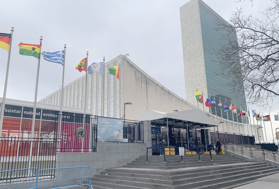 Imagen del 10 de marzo de 2020 de la entrada de visitantes de la sede de la Organización de las Naciones Unidas (ONU) en Nueva York. (Xinhua/Wang Jiangang)