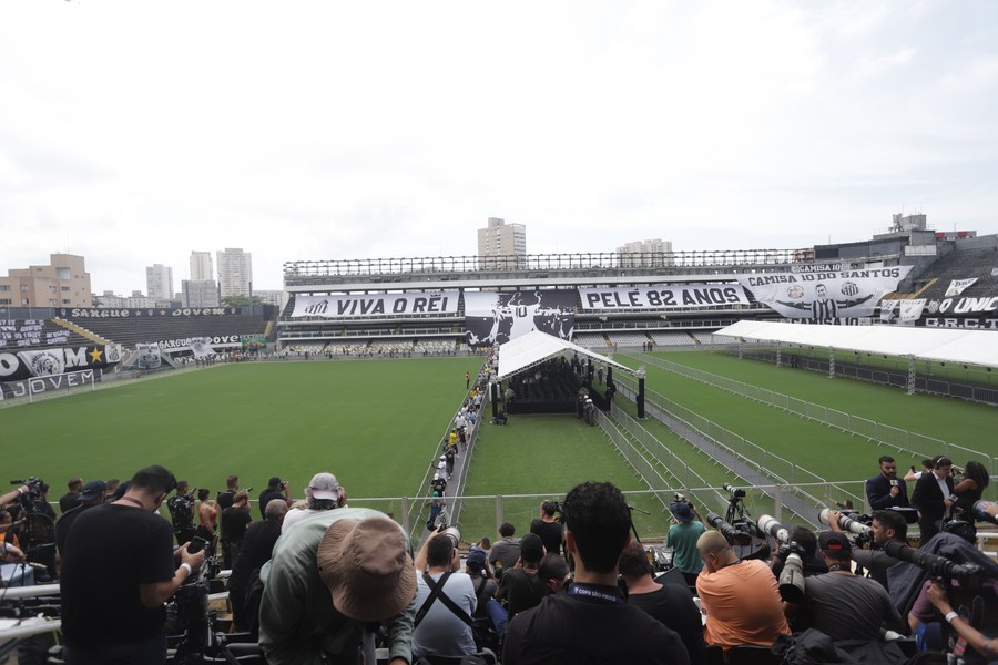 El velorio, que se realiza en el estadio Urbano Caldira del barrio Vila Belmiro de la ciudad brasileña de Santos, contó con la presencia del presidente de la Federación Internacional de Fútbol Asociación (FIFA), Gianni Infantino, y del titular de la Confederación Sudamericana de Fútbol (Conmebol), Alejandro Domínguez.