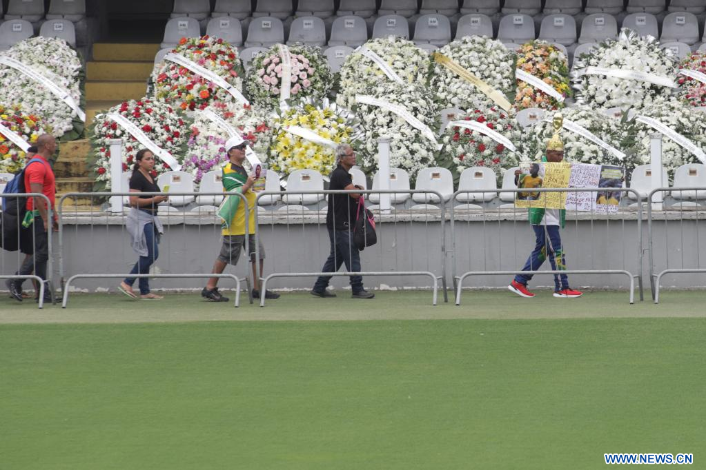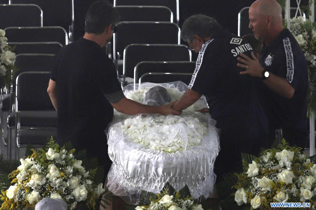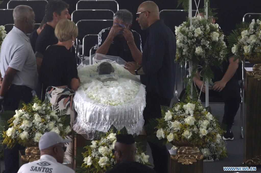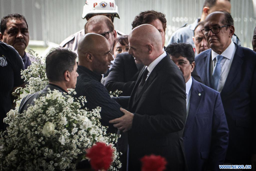 El velorio, que se realiza en el estadio Urbano Caldira del barrio Vila Belmiro de la ciudad brasileña de Santos, contó con la presencia del presidente de la Federación Internacional de Fútbol Asociación (FIFA), Gianni Infantino, y del titular de la Confederación Sudamericana de Fútbol (Conmebol), Alejandro Domínguez.