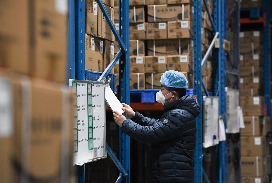 Un empleado trabaja en un almacén de una compañía farmacéutica en Xi'an, provincia noroccidental china de Shaanxi, el 19 de diciembre de 2022 (Xinhua/Zou Jingyi)