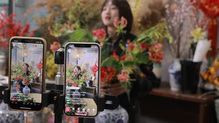 Tang Quanzhong, gerente general de City Flowers, ha estado ocupado con su personal durante más de medio mes, realizando diariamente transmisiones en vivo en las plataformas electrónicas Taobao y Douyin para vender sus flores, seis horas cada día. En las noches previas a la Fiesta de la Primavera, que cae el 22 de enero este año, cerca de 50.000 personas vieron esas emisiones.