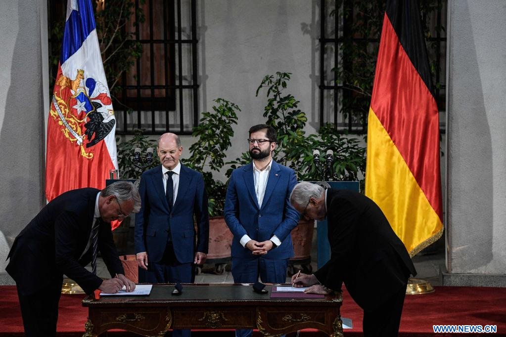 En un comunicado, la cartera explicó que el acuerdo fue firmado el domingo en el palacio presidencial de La Moneda, en la capital chilena, por el presidente de Chile, Gabriel Boric, y el canciller de Alemania, Olaf Scholz, en el marco de la visita oficial de este último al país austral.