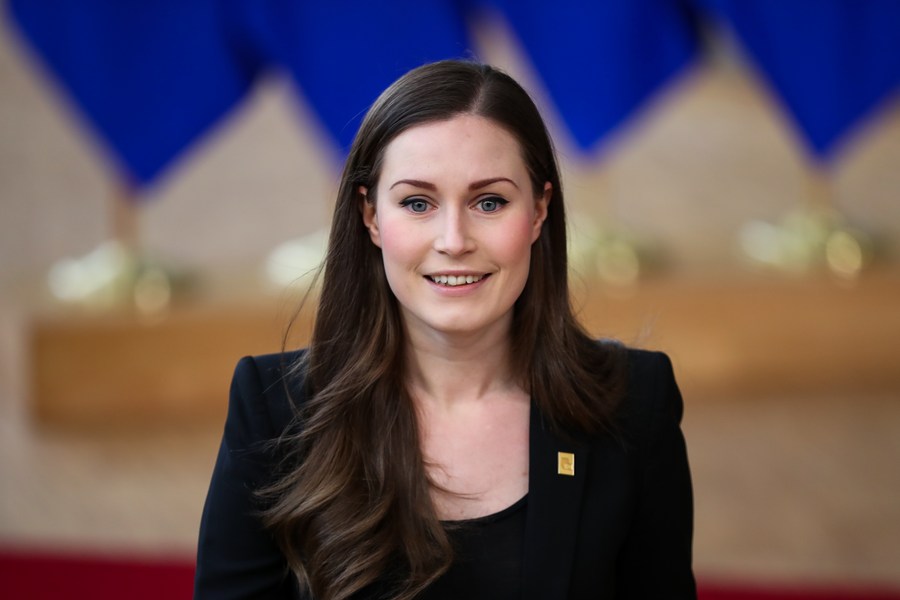 Imagen de archivo de la primera ministra de Finlandia, Sanna Marin, llegando para la sesión del segundo día de una reunión especial del Consejo Europeo, en la sede de la Unión Europea en Bruselas, Bélgica, el 22 de febrero de 2020. (Xinhua/Zhang Cheng)