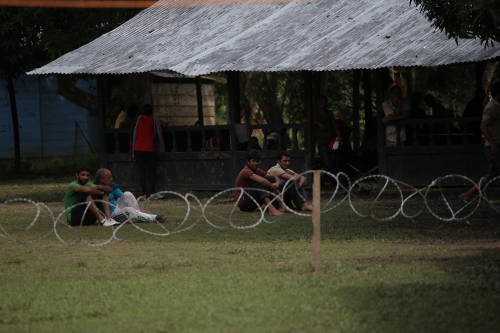 Imagen de archivo de migrantes ilegales descansando en la base del Servicio Nacional de Fronteras (Senafront), en Boca de Cupe, en la provincia panameña del Darién, el 16 de diciembre de 2014. (Xinhua/Mauricio Valenzuela)