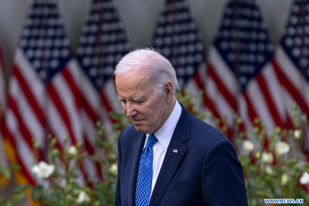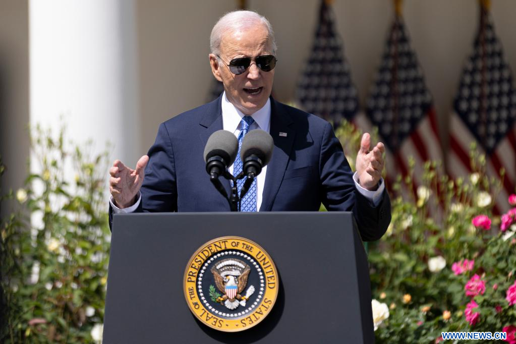WASHINGTON, 25 abril, 2023 (Xinhua) -- Imagen del 24 de abril de 2023 del presidente estadounidense, Joe Biden, visto durante un evento en la Casa Blanca, en Washington, D.C., Estados Unidos. Biden anunció formalmente el martes que se postulará para la reelección presidencial en 2024, buscando otros cuatro años en la Casa Blanca, según un video de campaña en línea. (Xinhua/Aaron Schwartz)
