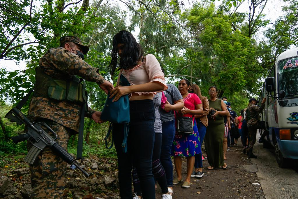 Imagen del 5 de mayo de 2022 de militares salvadoreños realizando un operativo de seguridad en transporte público, en el departamento de San Salvador, El Salvador. El Salvador reconoce los logros de China en el uso de tecnología e Inteligencia Artificial aplicada a la seguridad pública, una experiencia considerada como parte del perfeccionamiento de sus estrategias para enfrentar el crimen, afirmó el ministro de Justicia y Seguridad del país centroamericano, Gustavo Villatoro. (Xinhua/Alexander Peña)