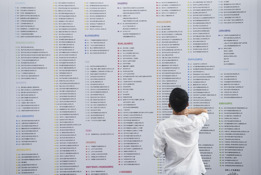 Imagen de archivo de un solicitante buscando oportunidades de trabajo en una feria de empleo durante la 19 Conferencia sobre Intercambio Internacional de Profesionales, en Shenzhen, en la provincia de Guangdong, en el sur de China, el 24 de abril de 2021. (Xinhua/Mao Siqian)