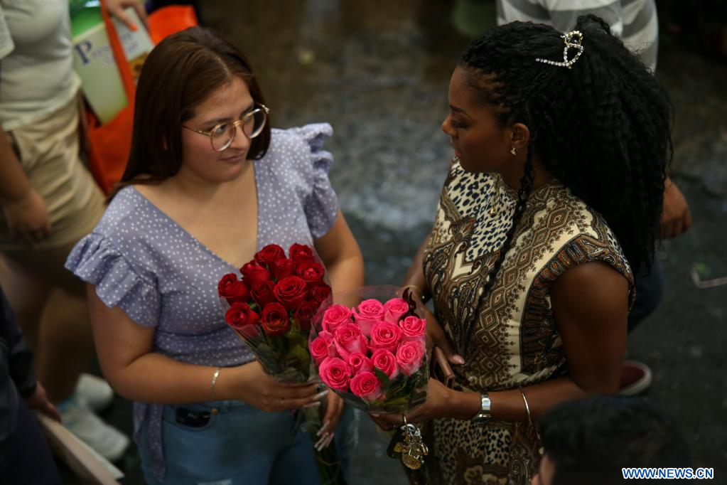 Imagen del 9 de mayo de 2023 de mujeres sosteniendo ramos de flores en el Mercado de Jamaica previo a la celebración del Día de las Madres, en la Ciudad de México, capital de México. El Día de las Madres se celebra anualmente en México el 10 de mayo. (Xinhua/Francisco Cañedo)