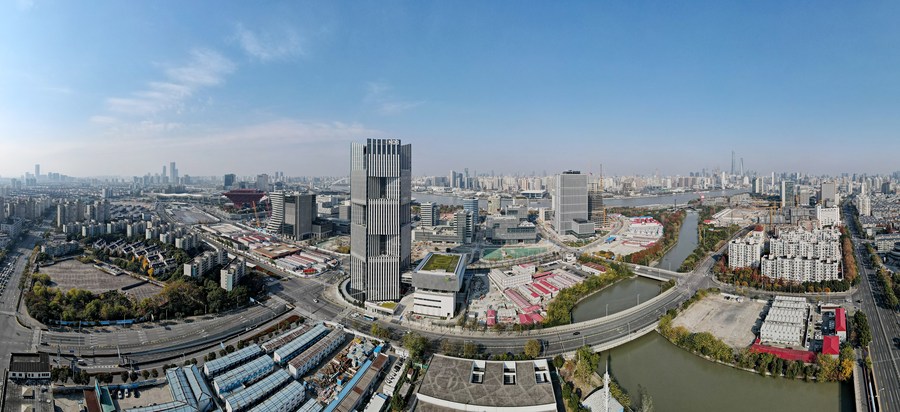Vista aérea del 17 de diciembre de 2020 de la vista panorámica del edificio de la sede del Nuevo Banco de Desarrollo (NBD) del grupo BRICS, en Shanghai, en el este de China. (Xinhua/Fang Zhe)