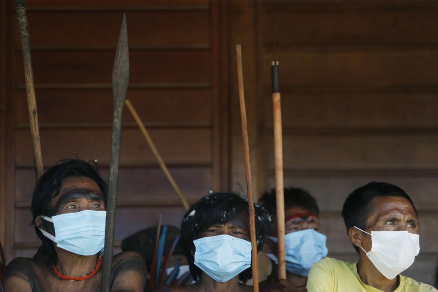 Imagen del 30 de junio de 2020 de indígenas de la etnia Yanomami esperando atención médica en la municipalidad de Auaris, estado de Roraima, Brasil. (Xinhua/Lucio Tavora)