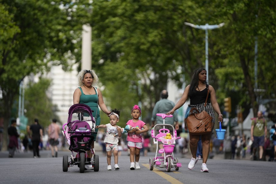 Personas pasean por la Avenida 18 de Julio en el centro de Montevideo, capital de Uruguay, el 12 de noviembre de 2022. (Xinhua/Nicolás Celaya)