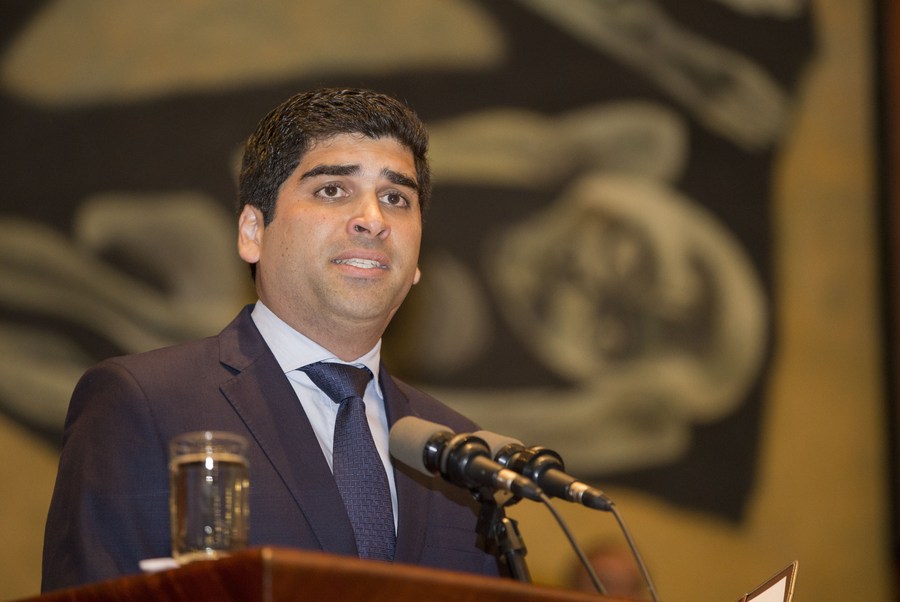 Otto Sonnenholzner pronuncia un discurso en la Asamblea Nacional, luego de ser nombrado como vicepresidente de Ecuador, en Quito, capital de Ecuador, el 11 de diciembre de 2018. (Xinhua/Santiago Armas)