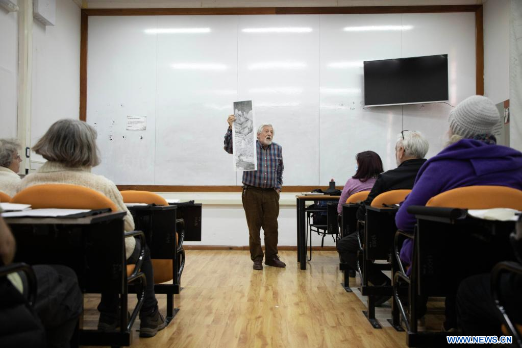 Imagen del 13 de junio de 2023 del experto Abel Dellutri (c) impartiendo una clase de pintura tradicional de China en el Instituto Confucio de la Universidad de Buenos Aires, en la ciudad de Buenos Aires, Argentina. La pintura tradicional de China se ha convertido en el eje de un atractivo curso que comenzó el martes en Argentina, centrándose en "los cuatro caballeros de la pintura china", que son el bambú, la orquídea, el crisantemo y el ciruelo en flor. (Xinhua/Martín Zabala)