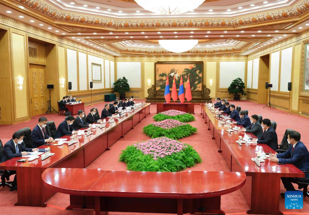 China está dispuesta a trabajar con Mongolia para implementar fielmente el consenso alcanzado por los dos jefes de Estado, seguir enriqueciendo la asociación estratégica integral China-Mongolia, profundizar la confianza política mutua y la cooperación de beneficio mutuo, y acelerar la construcción de una comunidad de destino China-Mongolia para beneficiar mejor a los dos pueblos.