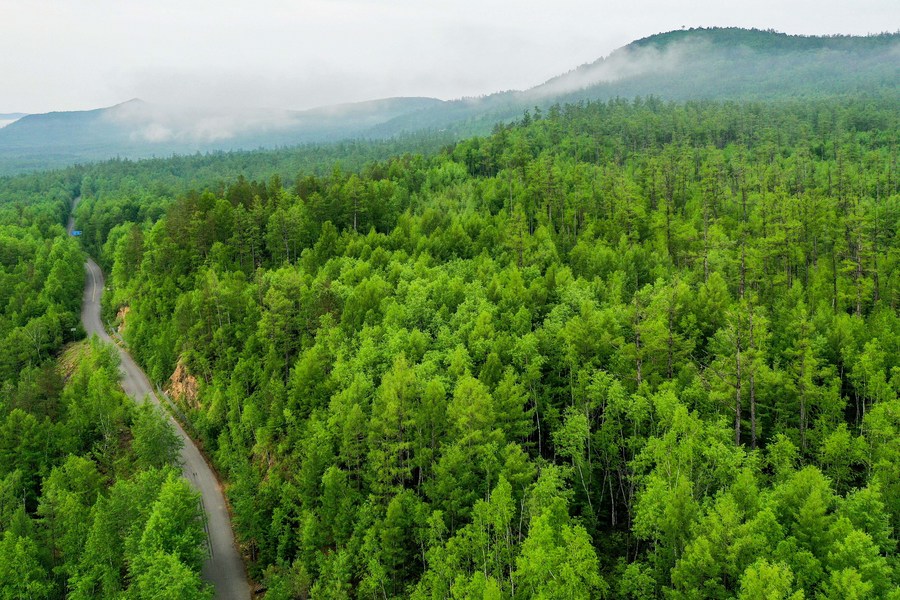 Foto aérea del Parque Forestal Nacional de Mordaga en Hulun Buir, en la región autónoma de Mongolia Interior, en el norte de China, el 12 de junio de 2022. (Xinhua/Li Zhipeng)
