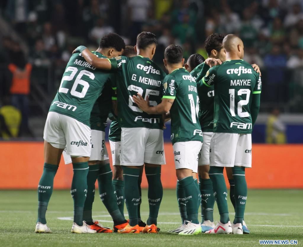 SAO PAULO, 10 agosto, 2023 (Xinhua) -- Imagen del 9 de agosto de 2023 de jugadores de Palmeiras de Brasil reuniéndose durante el partido de vuelta correspondiente a los octavos de final de la Copa Libertadores de América, ante Atlético Mineiro de Brasil, celebrado en el Estadio Allianz Parque, en Sao Paulo, Brasil. (Xinhua/Rahel Patrasso)