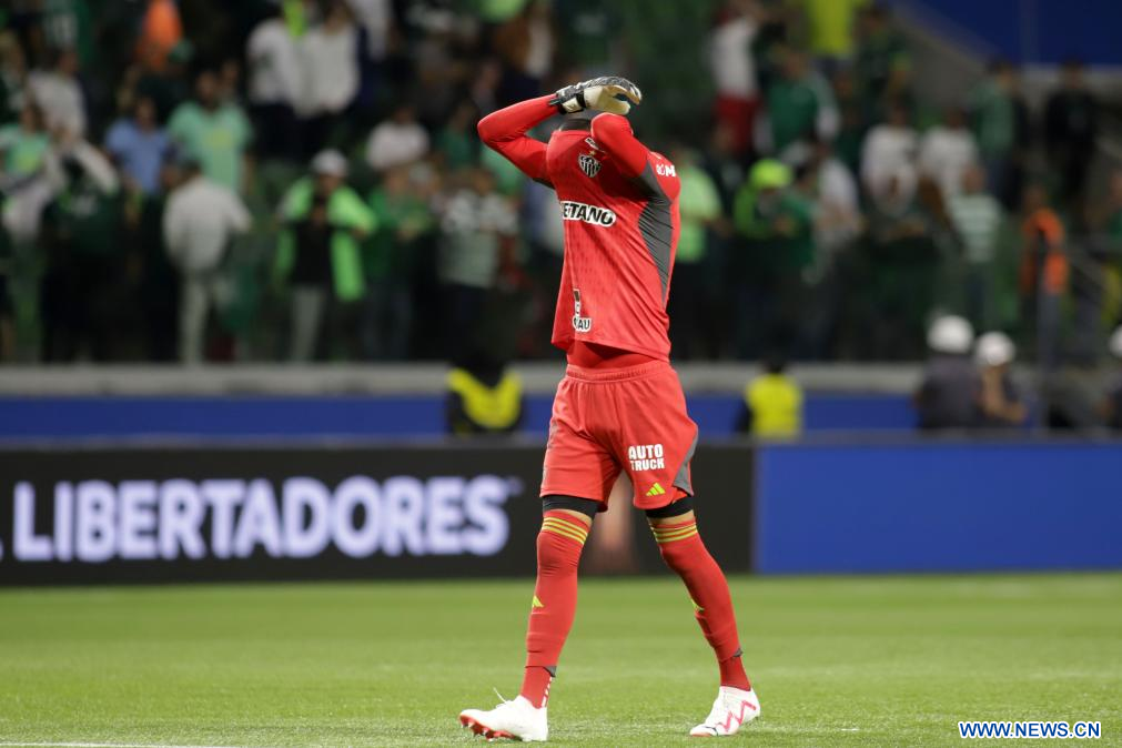 SAO PAULO, 10 agosto, 2023 (Xinhua) -- Imagen del 9 de agosto de 2023 del guardameta Everson, de Atlético Mineiro de Brasil, reaccionando al término del partido de vuelta correspondiente a los octavos de final de la Copa Libertadores de América, ante Palmeiras de Brasil, celebrado en el Estadio Allianz Parque, en Sao Paulo, Brasil. (Xinhua/Rahel Patrasso)