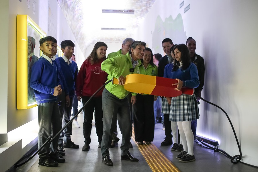 BOGOTÁ, 10 ago (Xinhua) -- El Vagón Escuela del Metro de Bogotá se inauguró el jueves en un evento realizado en el Parque de los Niños y las Niñas en el oriente de la capital colombiana, un espacio que durante cinco años se dedicará a la construcción ciudadana en torno al metro elevado que actualmente construye el consorcio Metro Línea 1 S.A.S., conformado por las empresas chinas Harbour Engineering Company Limited (CHEC) y Xi'an Metro Company Limited.
