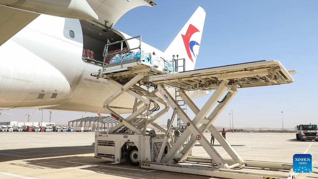 Equipos de primeros auxilios, purificadores de agua, tiendas de campaña, mantas, sistemas de diagnóstico ultrasonido, chalecos salvavidas y otros materiales humanitarios fueron descargados en el Aeropuerto Internacional de Benina, en presencia de Omar Abu-Dabous, secretario general de la Media Luna Roja de Libia, así como de importantes diplomáticos libios y chinos.