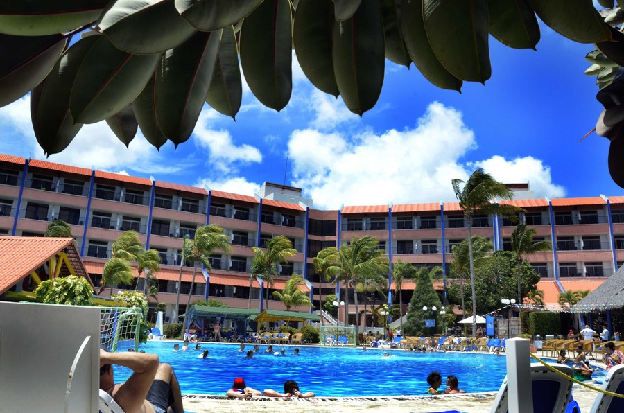 Imagen del 20 de julio de 2019 de turistas en la piscina de un hotel en el balneario de Guardalavaca, en la provincia de Holguín, Cuba. (Xinhua/Joaquín Hernández)
