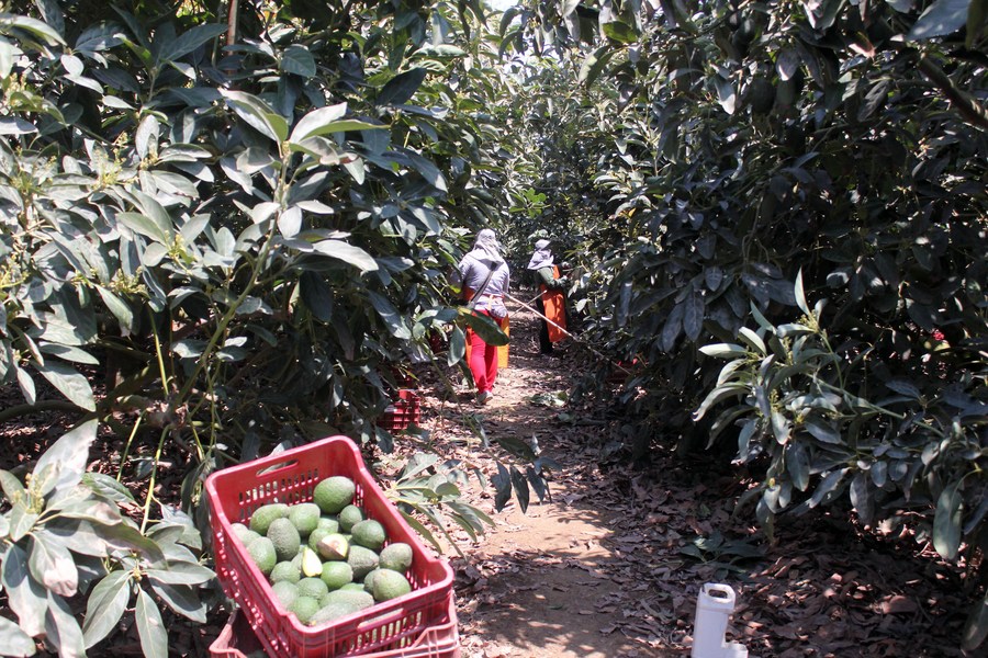Imagen del 3 de septiembre de 2015 de agricultores recolectando aguacates Hass, en el distrito El Carmen, en la provincia de Chincha, Perú. (Xinhua/Luis Camacho)