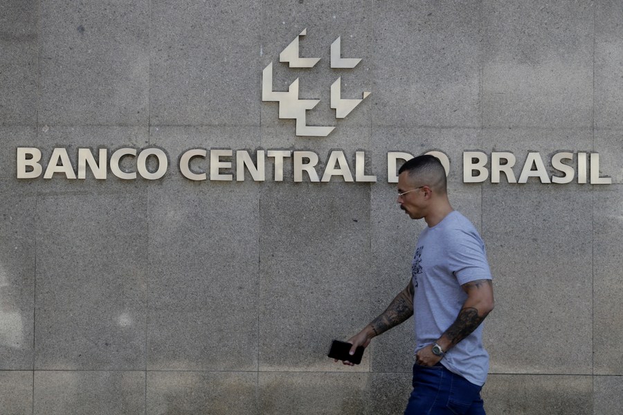 Un hombre camina frente a la sede del Banco Central de Brasil, en Brasilia, Brasil, el 4 de agosto de 2022. (Xinhua/Lucio Tavora)