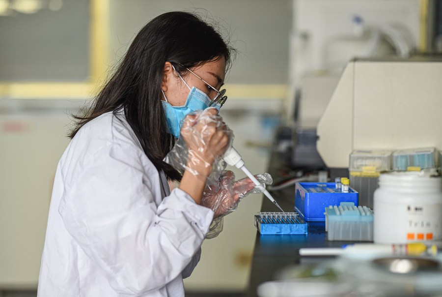 Imagen de archivo de una investigadora trabajando en un laboratorio del Instituto de Investigación del Coco de la Academia China de Ciencias Agrícolas Tropicales, en Wenchang, de la provincia meridional china de Hainan, el 11 de marzo de 2021. (Xinhua/Pu Xiaoxu)