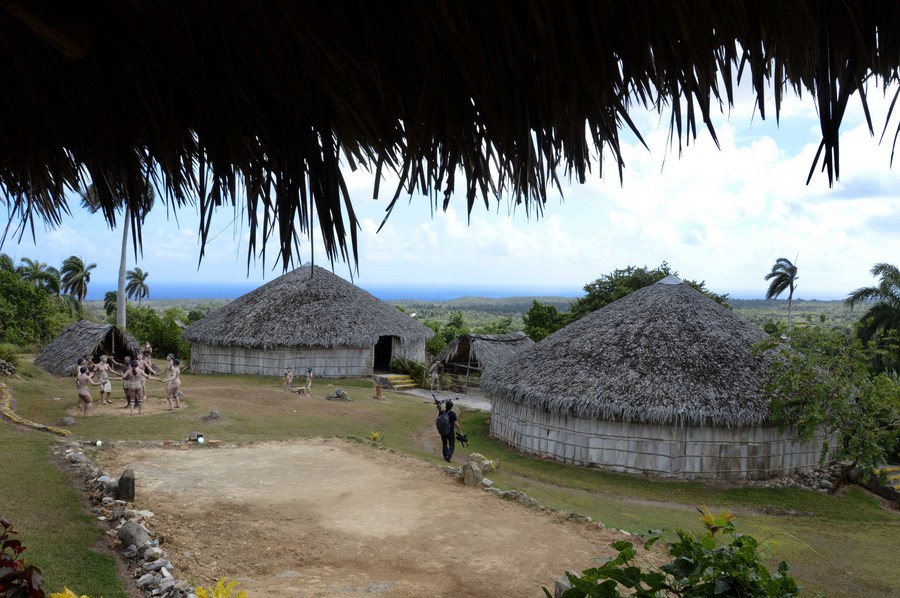 Vista de archivo de la Aldea Taína, una recreación de un poblado aborigen a tamaño real localizada frente al museo Chorro de Maíta, a 60 kilómetros de la oriental ciudad de Holguín, Cuba, el 20 de julio de 2019. (Xinhua/Joaquín Hernández)