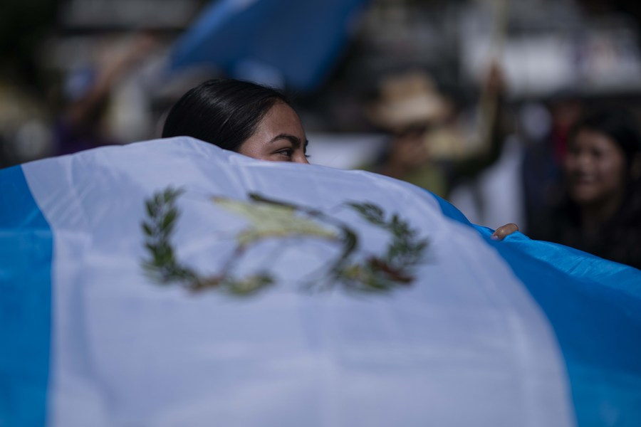 Una persona participa durante una manifestación para pedir la renuncia de la fiscal general y jefa del Ministerio Público (MP), Consuelo Porras, en el exterior de la sede del MP, en la Ciudad de Guatemala, capital de Guatemala, el 9 de octubre de 2023. (Xinhua/David de la Paz)