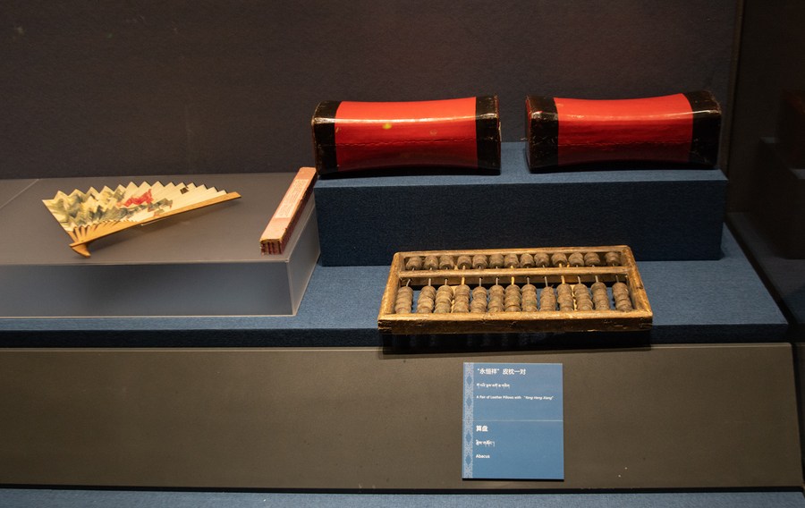 Esta foto del 6 de julio de 2022 muestra artículos exhibidos en el Museo del Tíbet en Lhasa, en la región autónoma del Tíbet, en el suroeste de China. (Xinhua/Jigme Dorje)