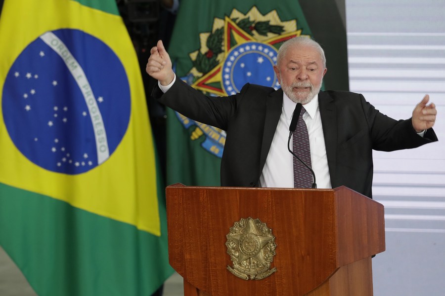 El presidente brasileño, Luiz Inácio Lula da Silva, habla durante la ceremonia de relanzamiento del programa denominado Bolsa Familia, en el Palacio de Planalto, en Brasilia, Brasil, el 2 de marzo de 2023. Lula da Silva relanzó el jueves el programa de subsidios para las familias con menos ingresos del país y pidió la aplicación de la ley contra el fraude en el registro de beneficiarios. (Xinhua/Lucio Tavora)