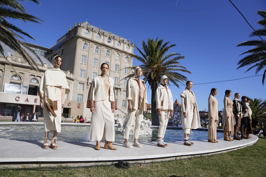 Modelos presentan creaciones de SAVIA de la colección Invierno 2023 durante la Semana de la Moda de Montevideo (MoWeek), en Montevideo, capital de Uruguay, el 3 de mayo de 2023. (Xinhua/Nicolás Celaya)