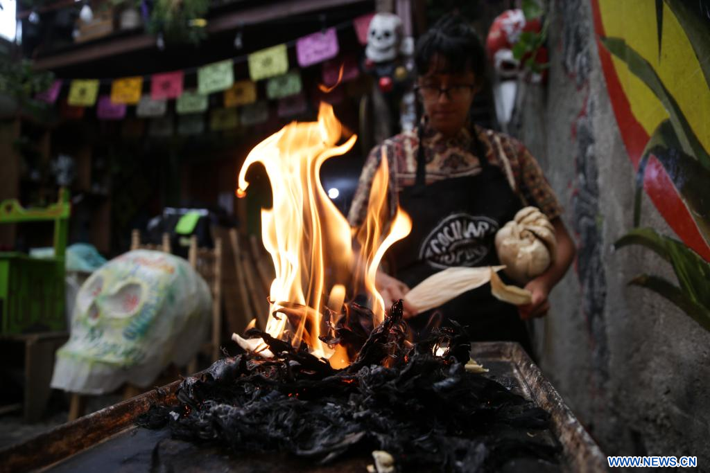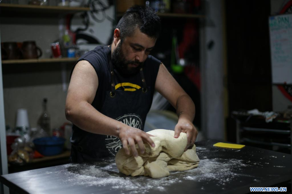 MÉXICO, 27 oct (Xinhua) -- Un olor a pan recién horneado, fresco, combinado con un mágico aroma a azahar, invade todos los espacios del Centro Cultural Independiente "Ey Maguey", donde una comunidad originaria produce el delicioso pan de muerto negro para celebrar el Día de Muertos, los días 1 y 2 de noviembre, en México.
