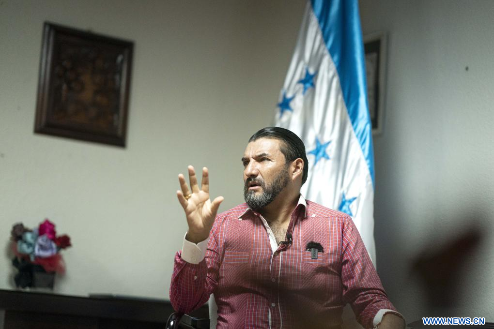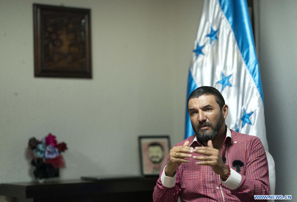 Imagen del 27 de octubre de 2023 del vicepresidente del Congreso Nacional de Honduras, Rasel Tomé, hablando durante una entrevista con la Agencia de Noticias Xinhua, en Tegucigalpa, Honduras. Las iniciativas de China para el desarrollo común del mundo son una oportunidad para Honduras y el resto de los países, afirmó Tomé en entrevista con Xinhua. (Xinhua/David de la Paz)