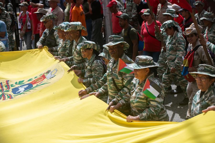 CARACAS, 4 nov (Xinhua) -- Miles de venezolanos marcharon hoy sábado en la capital venezolana en respaldo al pueblo palestino y para exigir el cese de los bombardeos de Israel sobre la Franja de Gaza.
