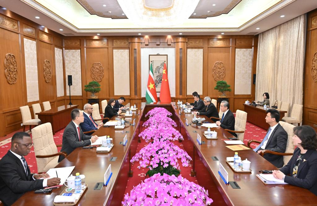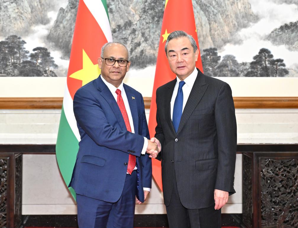 Wang, también miembro del Buró Político del Comité Central del Partido Comunista de China, dijo que China y Surinam disfrutan de una larga historia de amistad, y este año se cumple el 170° aniversario de la llegada de los chinos a Surinam. China está dispuesta a ser un socio confiable de Surinam en el proceso de desarrollo y revitalización y alcanzar conjuntamente la modernización.
