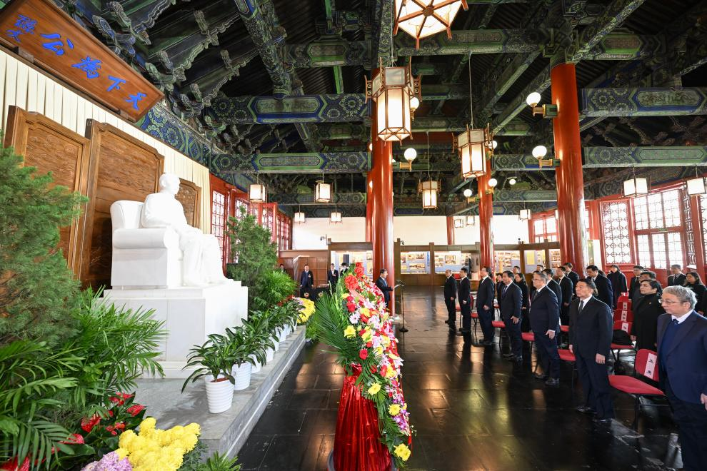 Altos funcionarios del Comité Nacional de la CCPPCh, del Comité Central del Comité Revolucionario del Kuomintang Chino, del Departamento de Trabajo del Frente Unido del Comité Central del Partido Comunista de China y del Gobierno municipal de Beijing colocaron ofrendas florales ante la estatua de Sun.