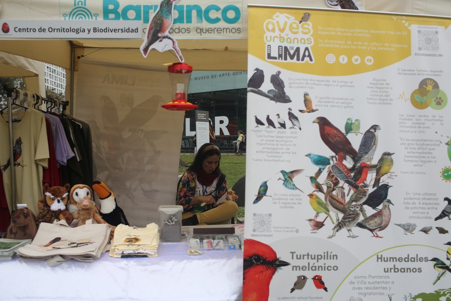 Una vendedora atiende su estand en la Feria de Productos Ecológicos y Servicio para la Agricultura durante el Festival de Ciudades Verdes, en Lima, Perú, el 9 de noviembre de 2023. (Xinhua/Mariana Bazo)