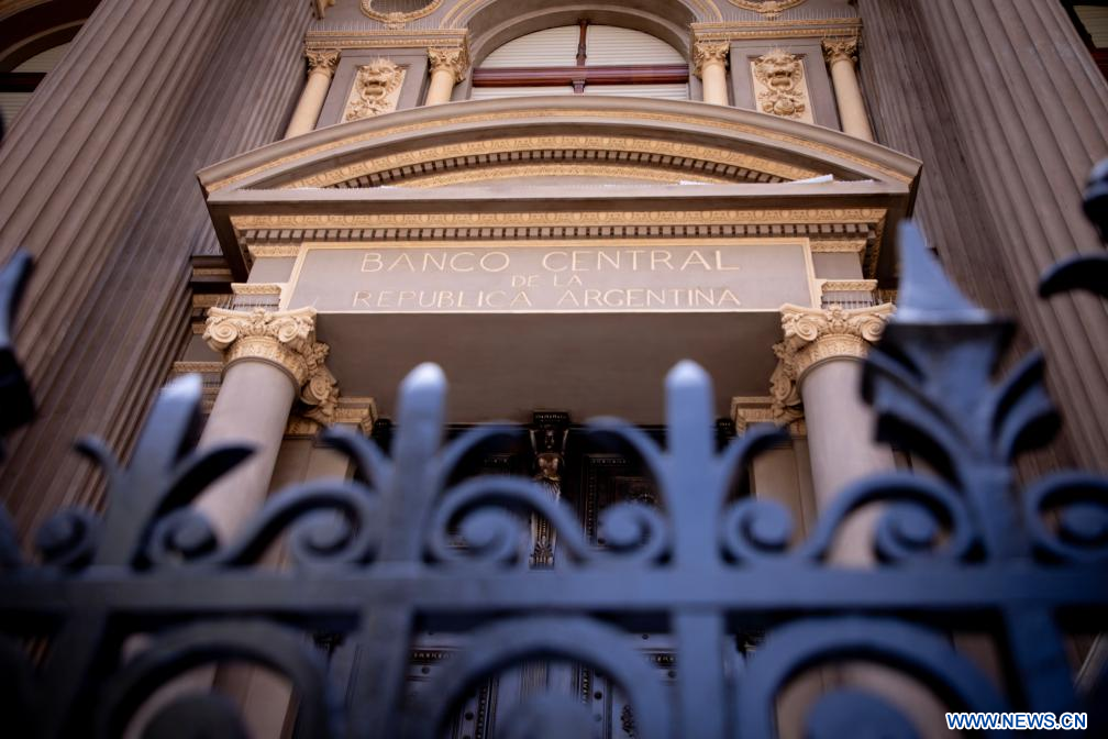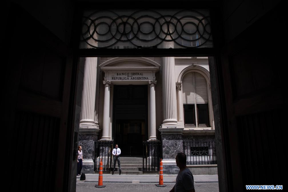 Imagen del 21 de noviembre de 2023 de personas caminando frente a la sede del Banco Central de la República Argentina, en la ciudad de Buenos Aires, Argentina. El Gobierno de Argentina emitió el martes nueva deuda en moneda local equivalente a unos 4.931 millones de dólares (según el tipo de cambio oficial) durante la última operación de licitación de títulos públicos del año, según informó el Ministerio de Economía. (Xinhua/Martín Zabala)