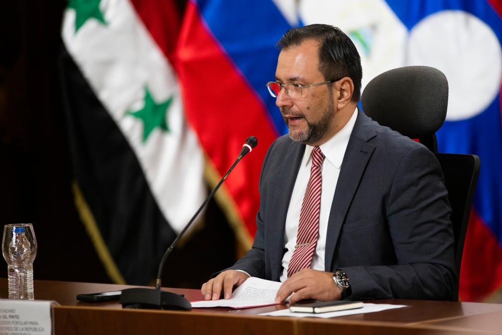 Durante su intervención oficial, Gil alertó "sobre las nuevas formas de guerra no convencional, como las medidas coercitivas unilaterales, expansión de bases militares extranjeras y el maltrato y confinamiento de migrantes".