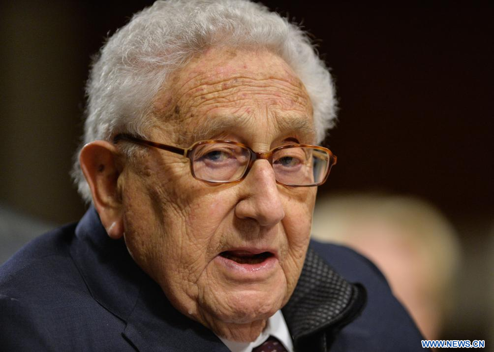 Imagen del 29 de enero de 2015 del exsecretario de Estado estadounidense, Henry Kissinger, testificando ante el Comité de Servicios Armados del Senado durante una audiencia sobre Retos Globales y la Estrategia de Seguridad Nacional estadounidense, en Washington D.C., Estados Unidos. Henry Kissinger falleció a los 100 años el 29 de noviembre de 2023. (Xinhua/Bao Dandan)
