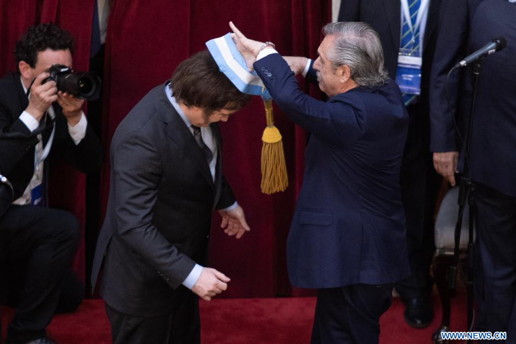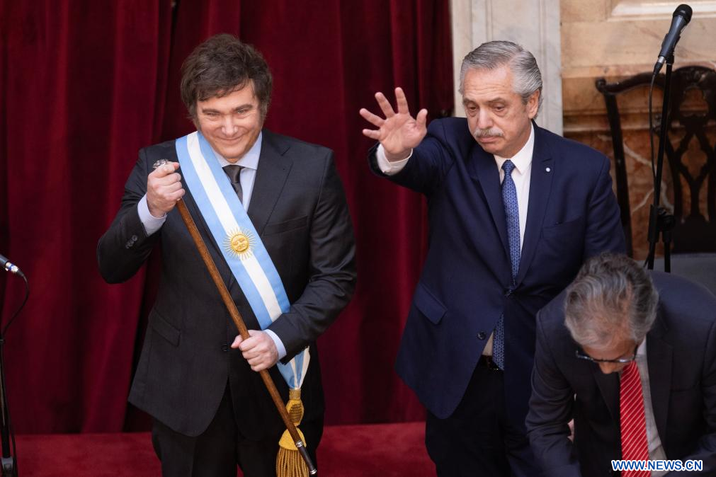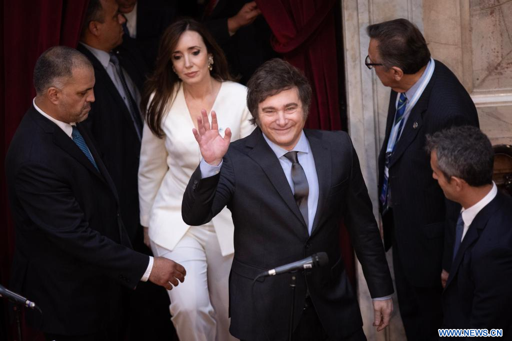 BUENOS AIRES, 10 dic (Xinhua) -- El político y economista liberal Javier Milei asumió hoy domingo la Presidencia de Argentina en una ceremonia que se celebró en el Congreso Nacional, en el centro de Buenos Aires, la capital del país.